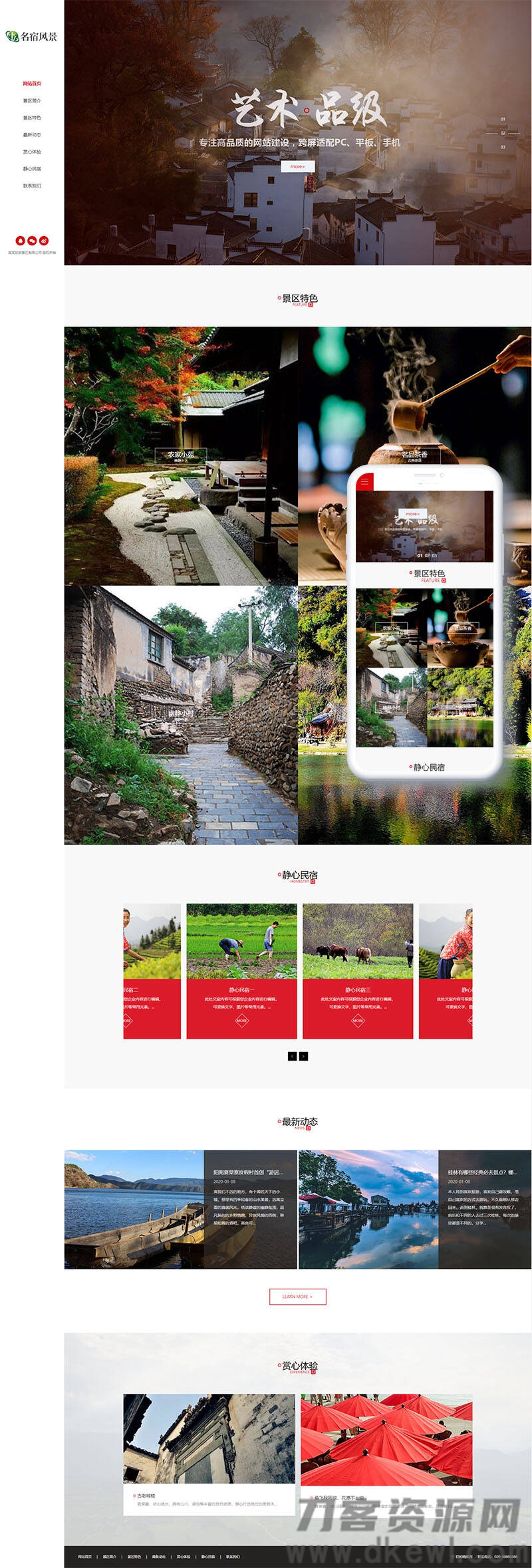 3、适用于民宿景区网站模板、旅游景点网站源码;