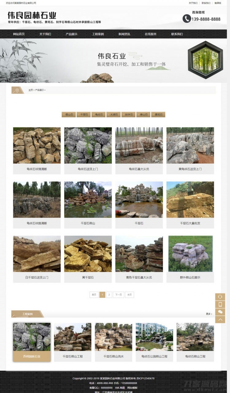 3、适用于园林石业织梦模板、假山石材网站源码;