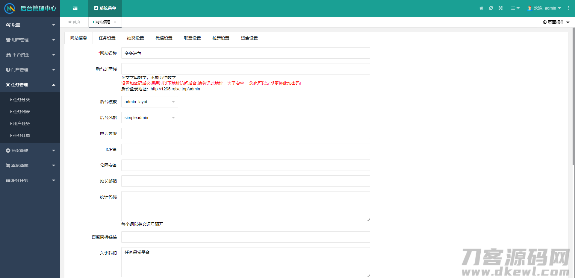 其他设置:包含最低提现设置,最低单个任务发布佣金设置、每日提现次数设置、任务信用分设置,完成不了任务信誉分降低等问题配置。
