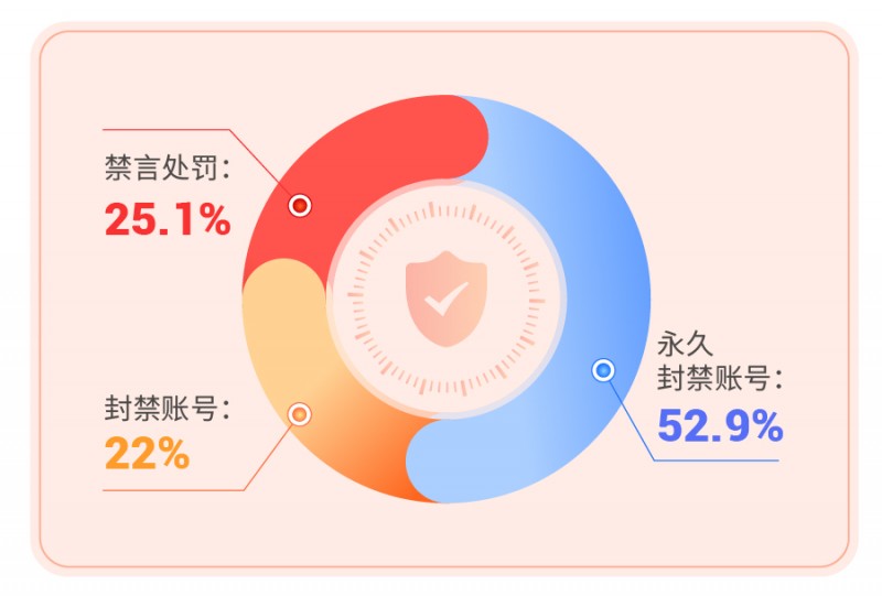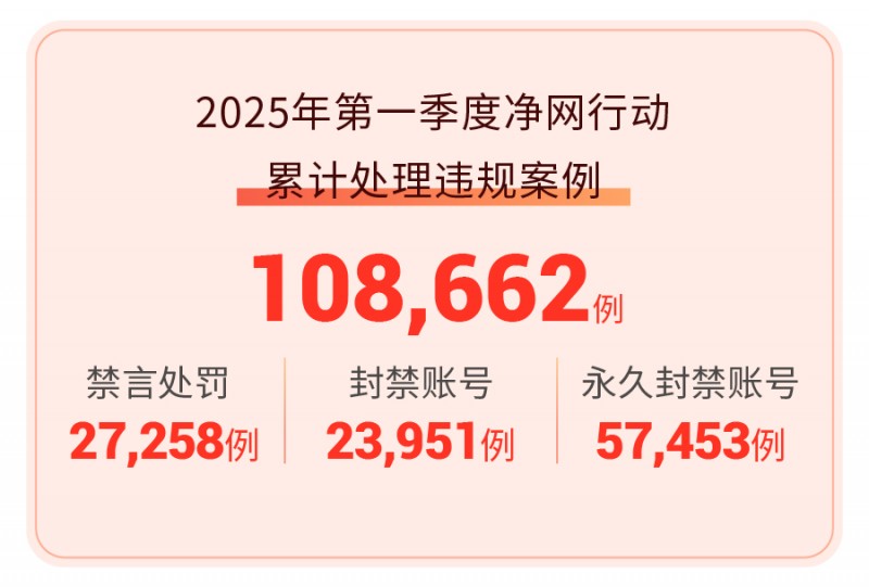2025 年第 一季度,平台累计处理违规案例108, 662 例,禁言处罚27, 258 例,封禁账号23, 951 例,永 久封禁账号57, 453 例,全方位构筑社交安全屏障,为用户打造真实、可靠的社交环境。