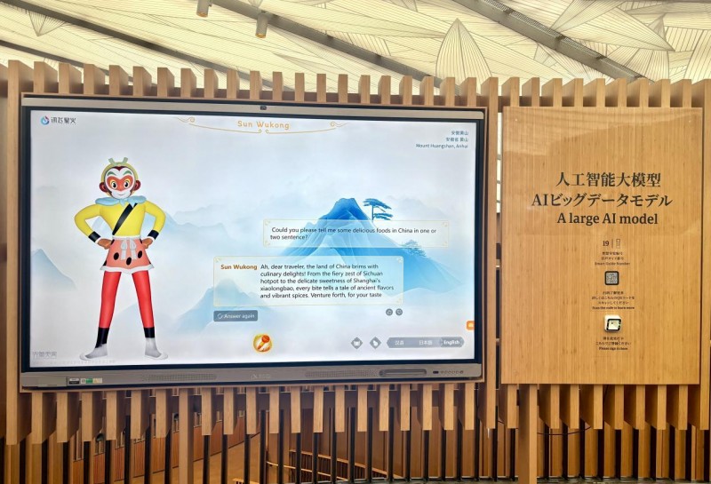 中国AI大模型也首秀世博舞台,科大讯飞代表中国人工智能企业展示了领先的AI大模型技术 ——依托国产自主可控讯飞星火大模型,打造了支持中、日、英三语实时交互的人工智能大模型展项“AI孙悟空”。这位精通三国语言的“数字大圣”,融合了多语种、高噪场景语音识别、多情感超拟人语音合成以及多模态交互等技术能力,为全球游客提供幽默问答和智慧导览,成为中国馆唯一大模型展项。