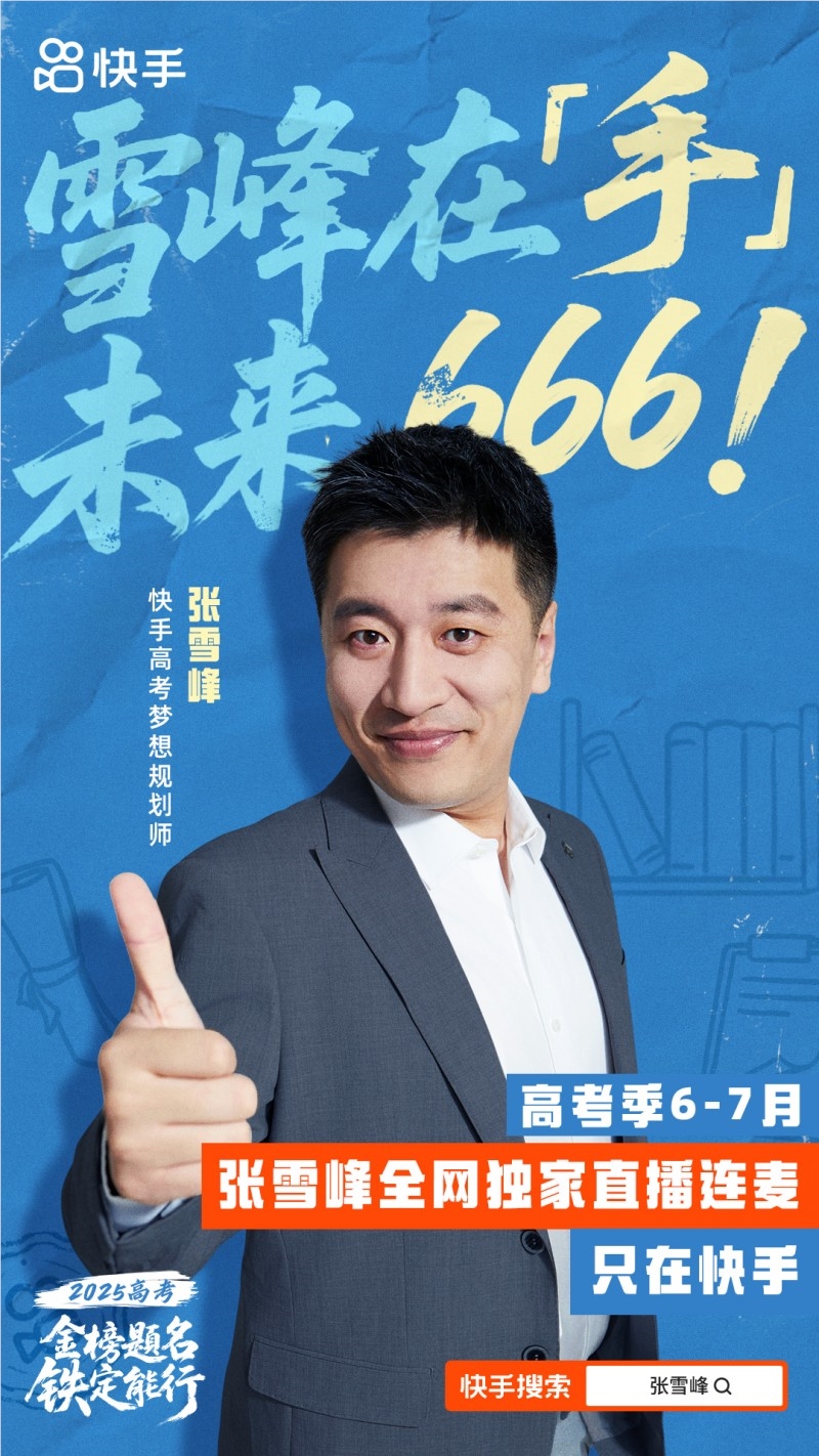 此外,6月15日-6月30日高考志愿报考核心期,作为快手高考梦想规划师的@张雪峰老师,将在快手开启15场高考志愿填报独家直播。期间,每晚19:30-22:30,张雪峰将带领专业团队一起分享志愿填报干货、解析全新报考思路、开启免费连麦答疑,指导考生家庭直面纷繁复杂的高校专业信息和投档录取规则,以及动态发展的产业前景与就业形势。