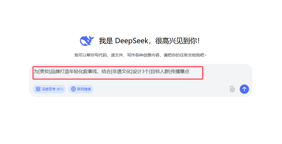 在当下竞争激烈的市场环境中,、与年轻消费者建立情感连接的关键。DeepSeek 能够精准捕捉年轻群体的语言风格和兴趣点,快速生成充满活力与共鸣的品牌故事。接下来为你详细介绍操作步骤。